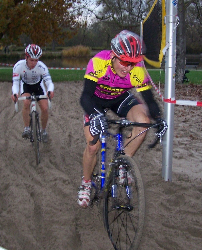 Beim erstmals ausgetragenen Karlsruher City-Cross in der Günther-Klotz Anlage konnten drei Ellmendinger Geländespezialisten mit guten Platzierungen aufwarten. Bei den Junioren erreichte Jannik Simon, vor Wochenfrist Neunter im südhessischen Lorsch, auf dem anspruchsvollen, ca. zwei Kilometer langen Kurs rund um den “Monte Klotz“ Rang acht. In der stark besetzten Eliteklasse konnte sich Roland Golderer, nach dreijähriger Pause in dieser Disziplin, in dem mehr als 50 Starter zählenden Feld hinter dem unangefochtenen Sieger Finn Heitmann als sehr guter Zehnter platzieren. Großes Pech hatte dagegen Roman Sedlmair, der sich nach dem ersten Drittel des Wettbewerbes auf einem glänzenden sechsten Rang befand, bevor ihn ein Sturz auf Platz zwölf zurück warf. |