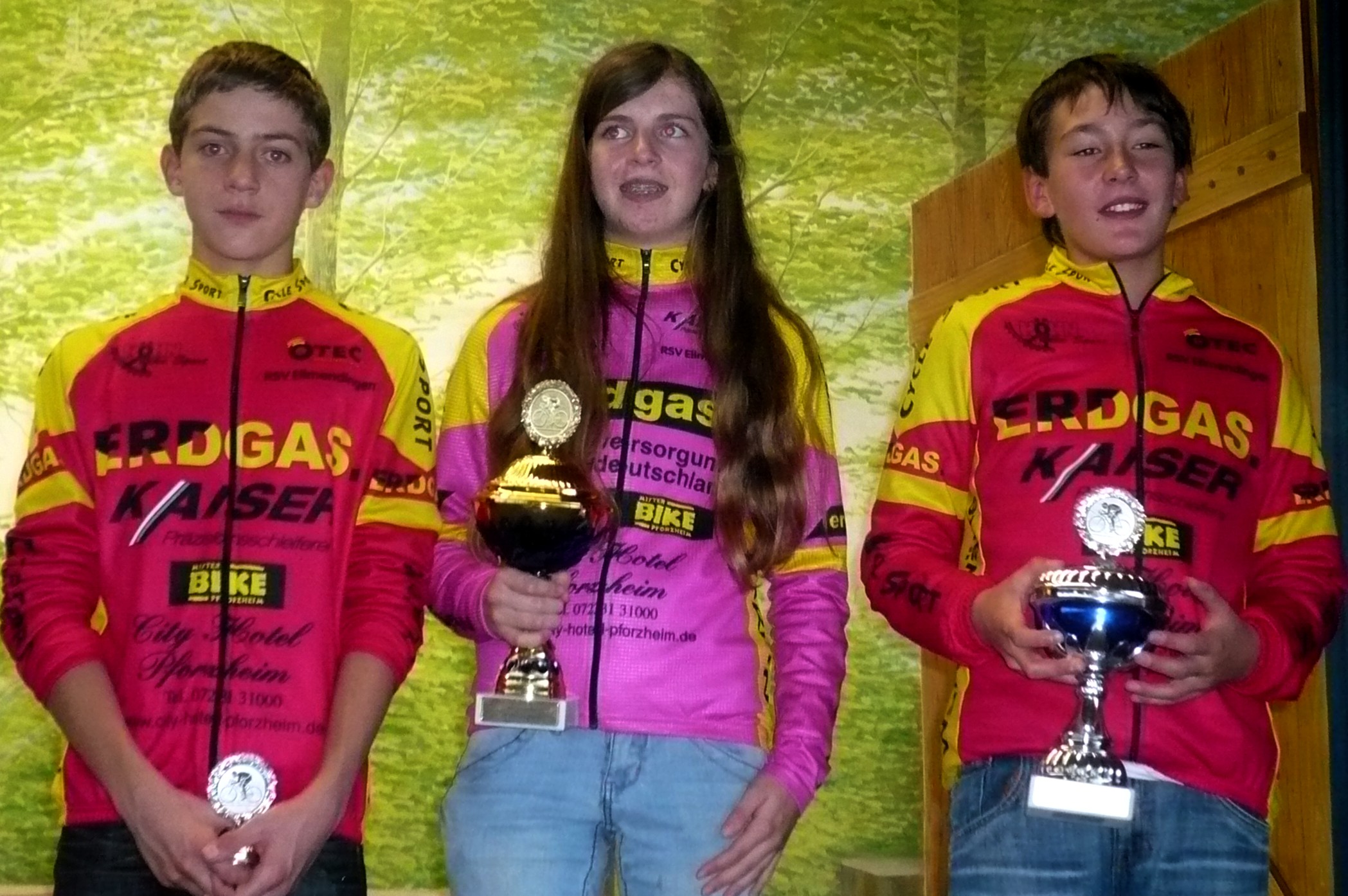 In Zierolshofen bei Kehl wurde am vergangenen Wochenende die Siegerehrung in der Rennserie „Badenpokal 2009“ durchgeführt. In der Klasse U15w gewann die Ellmendingerin Franziska Farr, die von den acht Wettbewerben jeweils drei Mal Platz eins bzw. Rang zwei belegte, mit acht Punkten Vorsprung auf Emma Kraft aus Weinheim die Gesamtwertung. Etwas knapper ging es bei den U13 zu, wo Moritz Augenstein aus Ellmendingen vier Punkte vor Dominik Wichtrey aus Singen/H für den Gesamtsieg reichten. Timo Heinkel als Siebter und Johannes Janik als Neunter rundeten das gute Mannschaftsergebnis in dieser Altersklasse ab. Ebenfalls als Neunter wurde bei den U15 Maximilian Backenstos ausgezeichnet. |